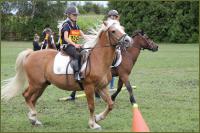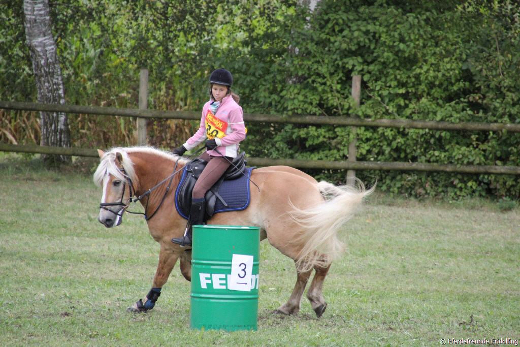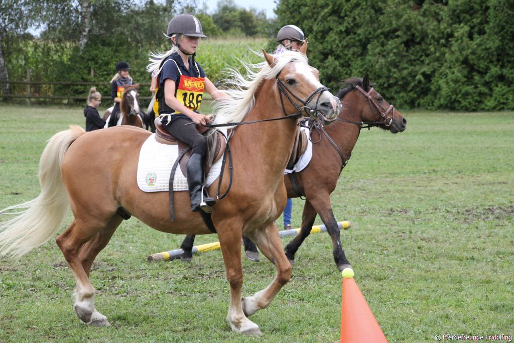 Beim anschließenden Tonnenrennen traten jeweils zwei Reiter gegeneinander an. Hier galt es, so schnell es ging, die Tonnen in einer festgelegten Reihenfolge zu umreiten. Nach dem Tonnenparcours durfte man geradeaus ins Ziel reiten. Hier gaben einige richtig viel Gas und so wurde es kurz vorm Ziel noch einmal spannend.