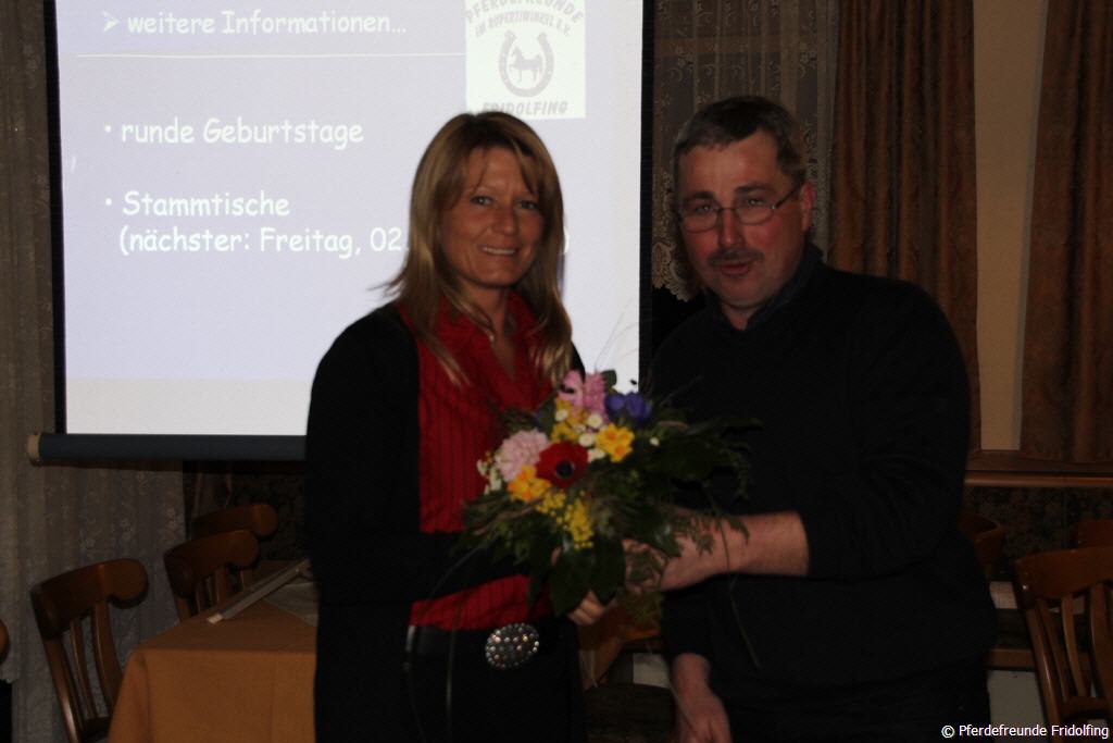 Der Verein durfte im Jahr 2011 das 300. Mitglied begrüßen. Deshalb wurde Andrea Dönhuber mit einem Blumenstrauß geehrt.