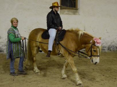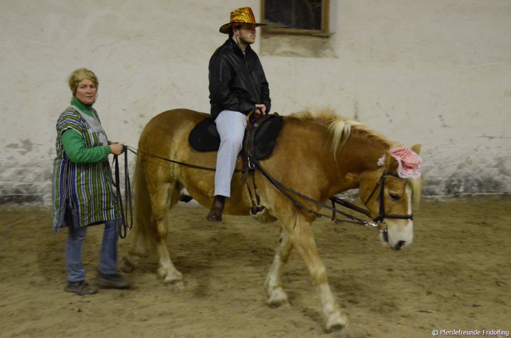 Am Faschingsmontag trafen sich die Reiter und Betreuer des Therapeutischen Reitens der Pferdefreunde im Rupertiwinkel e.V. Fridolfing wie jeden Montag in der Reithalle der Familie Meindl in Rothanschöring. Dort findet wöchentlich das Therapeutische Reiten unter Leitung von Gertraud Forster statt. Dieses Mal aber war ein besonderer Montag, da neben den Therapiereitern und deren Familien auch weitere Mitglieder der Fridolfinger Pferdefreunde in den raffiniertesten Verkleidungen erschienen waren, um den Therapiereitern beim Reiten zuzusehen. Außerdem gab es verschiedene Snacks, Muffins und Getränke, um nach dem Reiten in geselliger Runde Fasching zu feiern. Auch Vorstand Franz Mayer ließ es sich nicht nehmen und kam maskiert, um sich der Faschingsfeier anzuschließen. Er überraschte das Team des Therapeutischen Reitens mit einer großzügigen Geldspende eines treuen Unterstützers des Therapiereitens, worüber sich alle sehr freuten und sehr dankbar waren. Ein herzliches Vergelt’s Gott geht auch an Familie Meindl, die das Therapeutische Reiten so freundlich bei sich aufnimmt und unterstützt.