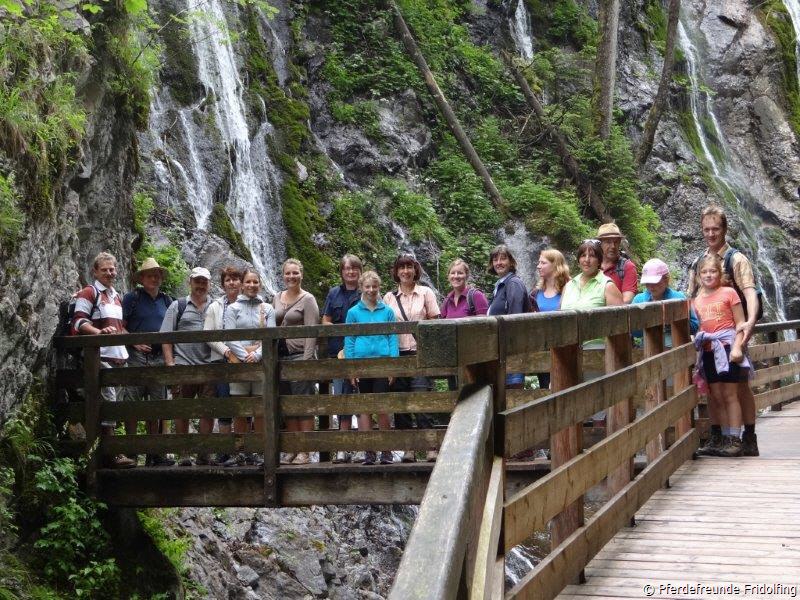 Am Sonntag, 15. Juni veranstalteten die Pferdefreunde im Rupertiwinkel Fridolfing eine gemeinsame Vereinswanderung. Treffpunkt war der Wanderparkplatz an der Wimbachbrücke in der Ramsau, wo die 26-köpfige Gruppe ihre Wanderung startete. Der Weg führte durch die Wimbachklamm im Nationalpark Berchtesgaden, die dem Watzmann zu Füßen liegt. Beeindruckt von den gigantischen Wassermassen und dem klaren Bergwasser des Wimbachs schritten die Pferdefreunde auf einem Wanderweg mit Brücken und Holzstegen durch die rund 200 Meter lange Klamm. Der Weg führte anschließend wieder hinaus auf einen angenehm zu gehenden Wanderweg. Ziel war das Wimbachschloss, ein ehemaliges Jagdschloss von Prinzregent Luitpold, das auf 937 Metern Höhe liegt. Die Wandergruppe wurde dort bereits von Hüttenwirtin Cathi Strobl, die Mitglied bei den Fridolfinger Pferdefreunden ist, erwartet und herzlich in Empfang genommen. In einer gemütlichen Stube stärkten sich die Fridolfinger Pferdefreunde mit Brotzeit, Kaffee und Kuchen. Natürlich durfte auch ein Schnapsler- spendiert und serviert von der Hüttenwirtin persönlich- nicht fehlen! Nach einem rundum gelungenen Ausflug traten die Pferdefreunde wieder ihren Heimweg an.