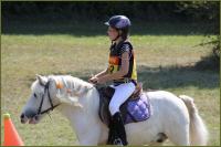 Dieses Jahr standen wieder fünf verschiedene Spiele auf dem Programm. Begonnen wurde mit der Jagd um Punkte, bei der ein kleiner Sprung, ein Flatterbogen, ein Kreisel, eine Ballwurfstation und ein Fähnchenturm aufgebaut waren. Ziel war es, die verschiedenen Hindernisse in vorgegebener Zeit so oft zu bewältigen, wie es möglich war. Hierbei zeigten die Kinder vor allem beim Kreisel viel Geschick, da sie die Zügel nur mit einer Hand halten konnten und im Kreis reiten mussten.