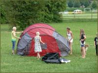 Am Freitag, den 17. Juli veranstalteten die Pferdefreunde im Rupertiwinkel Fridolfing ihr alljährliches Zeltlager für "Jung und Alt". Bei sommerlich heißen Temperaturen wurde gegen 19.00 Uhr mit dem Aufbau der Zelte begonnen. Bis alle Zelte aufgebaut waren, war auch schon ein vielfältiges Salatbuffet angerichtet und es wurde eine Feuerstelle vorbereitet. Anschließend wurde gegrillt, über dem Lagerfeuer Stockbrot gemacht und viel geratscht und gelacht. Da sich der Himmel verdunkelte und ein Wind aufkam, fiel die geplante Nachtwanderung aus und zur Sicherheit wurden die Zelte wieder abgebaut. Gemeinsame Spiele sowie Lieder mit Gitarrenbegleitung ließen bei den Kindern die Stimmung wieder steigen. Auch wenn sich das Gewitter wieder verzogen hatte, fiel die Übernachtung aus. Erst gegen Mitternacht wurde die gesellige Runde aufgelöst und die Heimreise angetreten.