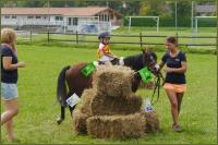 Das letzte Spiel des Ponyexpress war wie immer die traditionelle „Reise nach Jerusalem“. Heuballen wurden dazu in einem Kreis aufgestellt, die von den Reitern zu fetziger Musik umritten wurden. Sobald die Musik stoppte, hieß es schnell zu sein und sich einen freien Ballen zu suchen. Wer keinen Platz auf einem Ballen fand, musste ausscheiden. Die Reiter mit den kleineren Ponys waren hier klar im Vorteil, da das Abspringen schneller ging als bei den größeren Ponys. Einige ritten dabei sogar ohne Sattel.