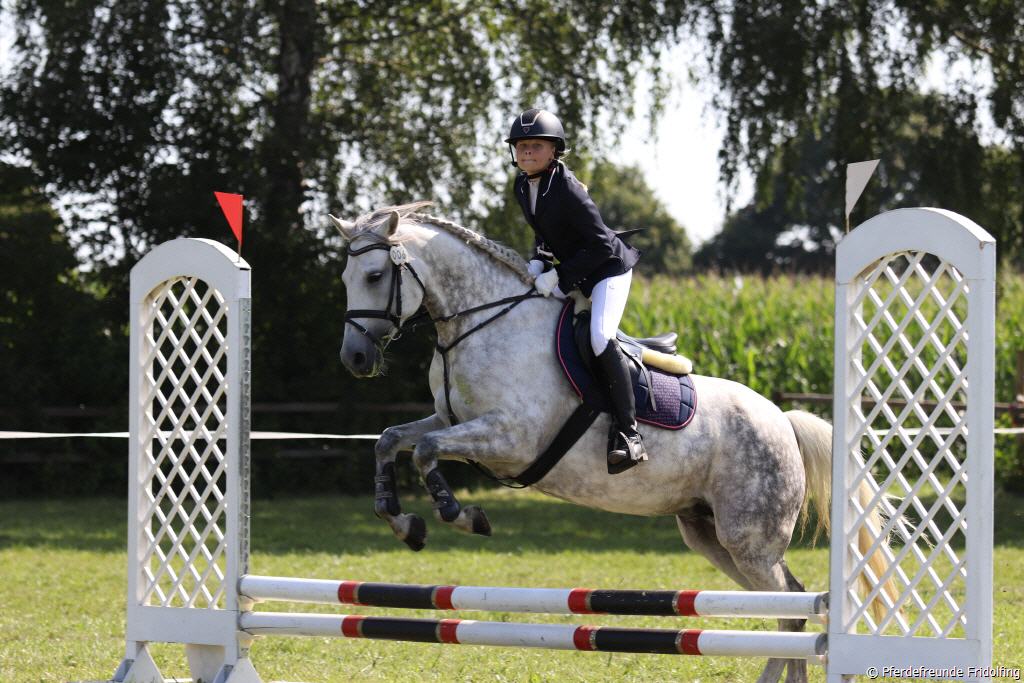 Beim anschließenden E-Stil-Springen galt es, einen Springparcours in der richtigen Reihenfolge zu durchreiten. Dabei wurde das Einwirken auf das Pferd im Parcours sowie der Sitz des Reiters über dem Sprung bewertet. Elena Kühn siegte in dieser Prüfung auf Remi.