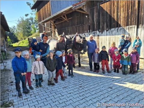 „Weil uns dieses Angebot so gefällt und auch die Kinder die Freude am Pferd gut nachvollziehen können, haben wir dieses Herzensprojekt ausgewählt. Als Dankeschön durften wir die Pferde Rambo und Ronja kennen lernen und bei sonnigem Herbstwetter eine Kutschenfahrt machen. Daran werden wir uns sicherlich noch ganz lange erinnern.“, meint Christina Gramsamer, Leitung des Fridolfinger Waldkindergartens.
