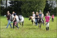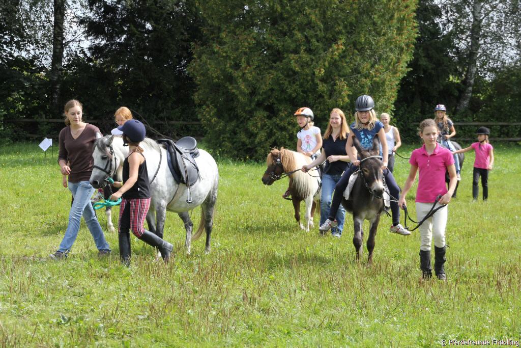 Am Dienstag, 16. August versammelten sich die Pferdefreunde im Rupertiwinkel e.V. Fridolfing am Reitplatz, um den rund 30 Teilnehmern des Ferienprogramms das Pferd etwas näher zu bringen. Die Kinder wurden in verschiedene Gruppen aufgeteilt, die dann zu den einzelnen Stationen gingen. Dabei konnten die pferdebegeisterten Kinder auf den Ponies reiten und sie putzen, was ihnen sehr viel Spaß bereitete. Auch Esel Joschi bekam viele Streicheleinheiten und wurde mit den Bürsten schön zum Glänzen gebracht. Weitere Stationen waren das Hufeisenwerfen, das Bemalen verschiedener Pferdemandalas, eine Kutschenfahrt, mit einem Leiterwagen durch einen Kegelslalom fahren, Seilziehen und ein witziges Pferde-Quiz. Die Helfer der Pferdefreunde erklärten den Kindern wichtige Regeln im Umgang mit Pferden und waren für alle Fragen der Kinder offen. Nachdem die einzelnen Stationen durchgeführt wurden, gab es zur Stärkung im Reiterheim eine Brotzeit und Eis.